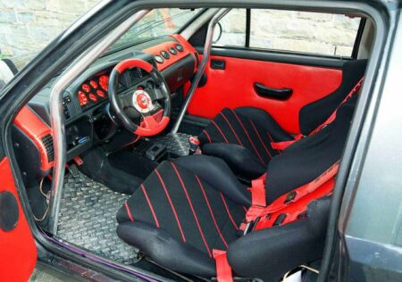 Rote Rückleuchten, Recaro Halbschalen mit rotem Kunstleder bezogen,